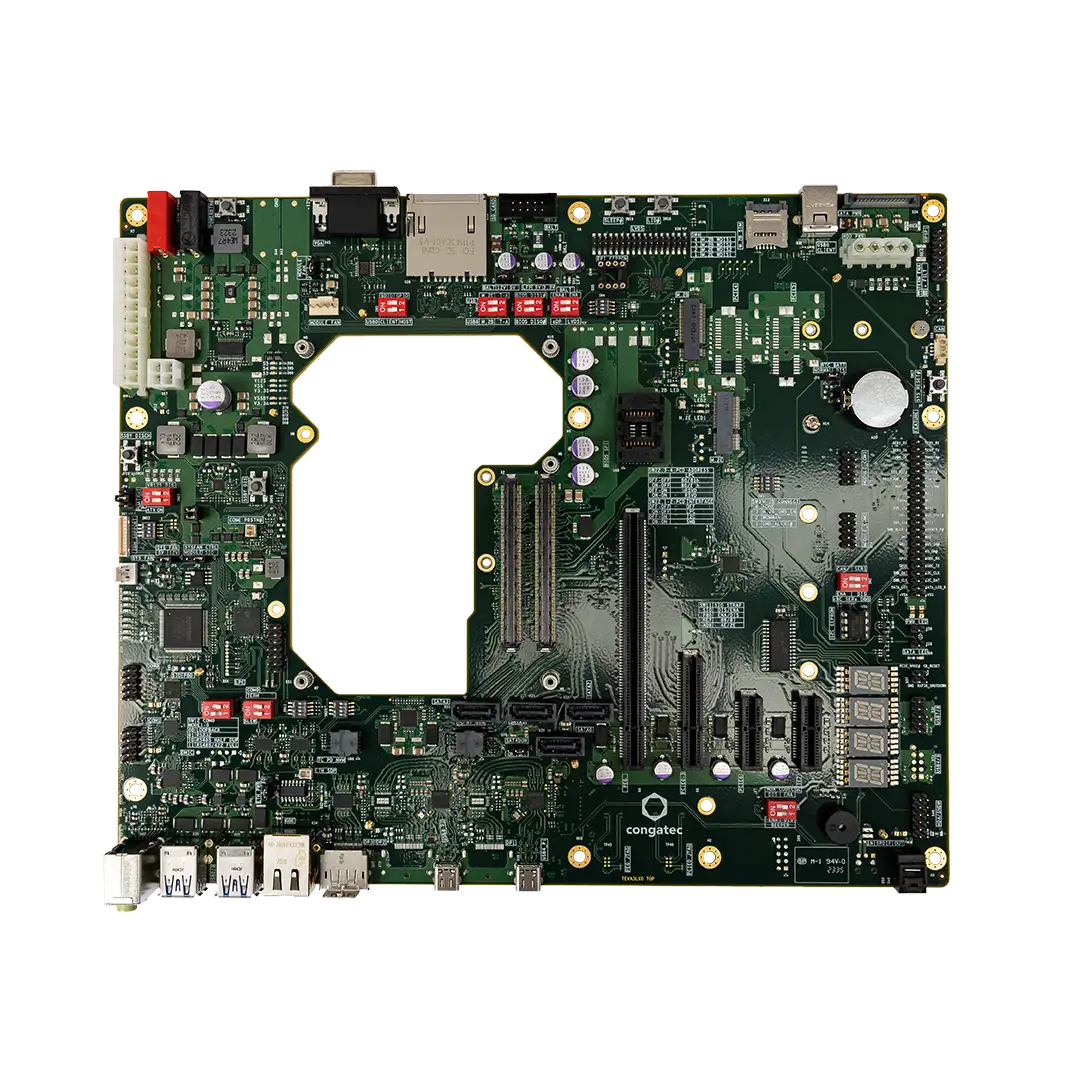 congatec COM Express Type 6 evaluation carrier compliant to COM Express 3.1 specification. Industrial temperature range. From -40°C to 85°C