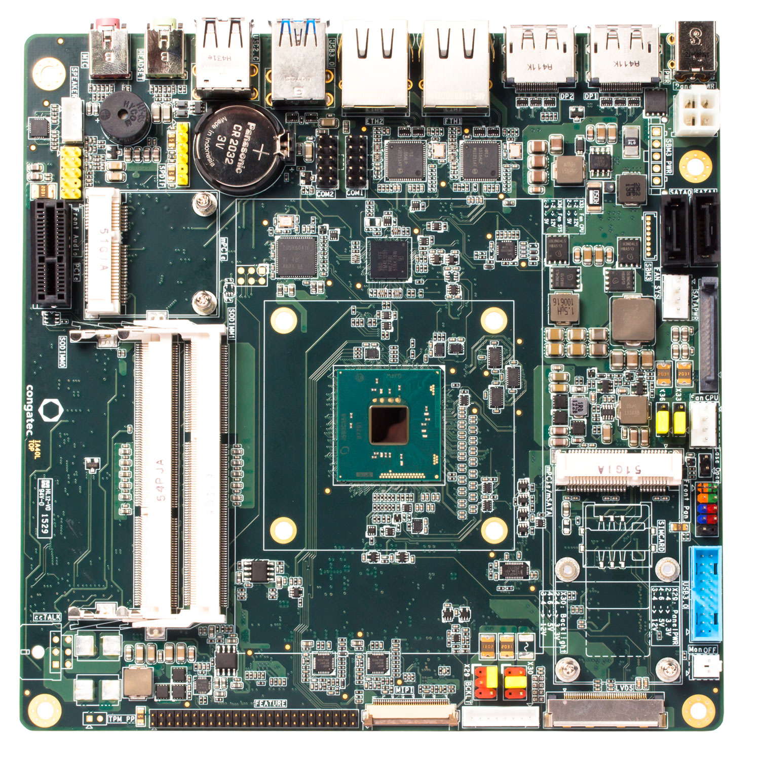 Das umfassende Schnittstellenangebot beinhaltet neben einem PCIe x1 Slot auch zwei Mini PCIe Steckplätze sowie 4x USB 3.0 und 2x USB 2.0 für spezifische Erweiterungen. Bis zu zwei MIPI CSI-2 Kameras können direkt über den Featurekonnektor angebunden werden. Zudem werden 2x Gigabit Ethernet, 1x mSATA 3.0, 1x SATA 3.0, 2x UART sowie 8 GPIO und HD Audio ausgeführt. Betriebssystem-Support wird für Linux und alle üblichen Microsoft Windows Varianten geboten – Microsoft Windows 10 inklusive. Umfangreiches, Design-in erleichterndes Zubehör wie Kühllösungen, I/O-Blenden und Kabelsätze runden das Angebot ab.