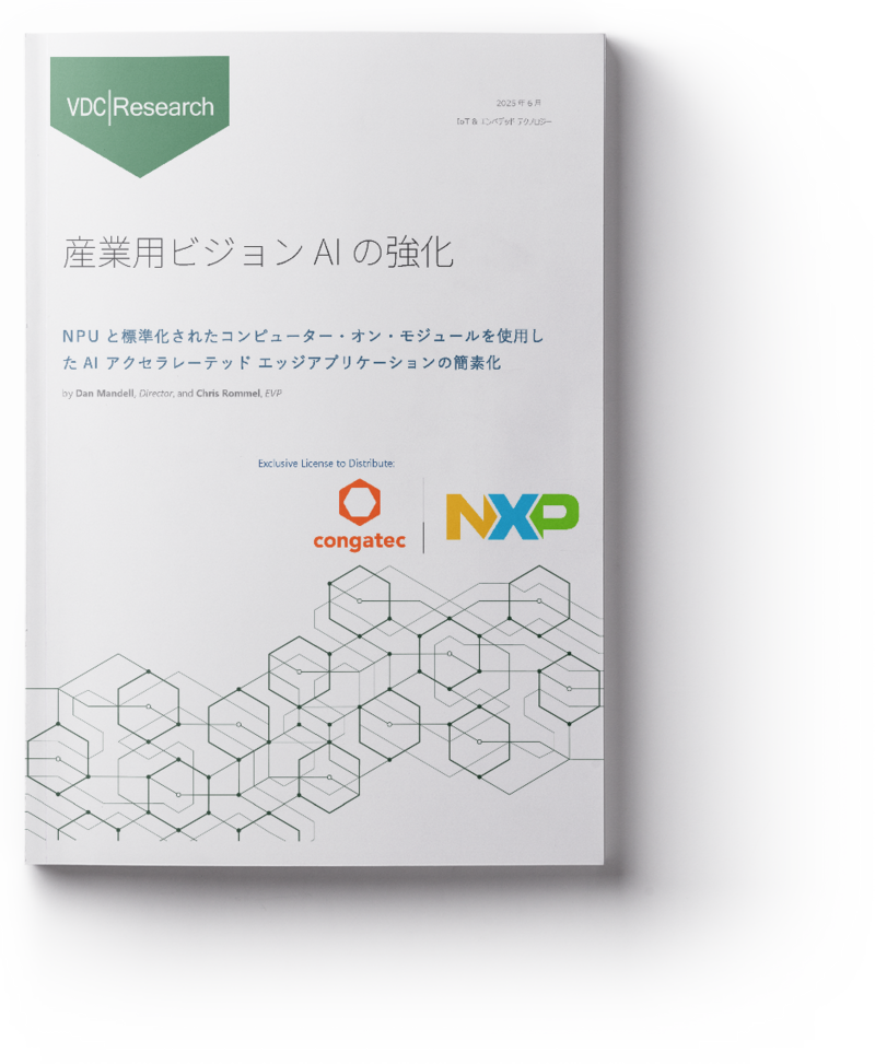 組込み、およびエッジコンピューティング テクノロジーのリーディング ベンダーである コンガテック(congatec)と、その長年のパートナーである NXP Semiconductors N.V.(NASDAQ: NXPI)は本日、VDC Researchによる新しいホワイトペーパー 「Empowering Industrial Vision AI(産業用ビジョンAIの強化)」 を即時公開すると発表しました。 この洞察に満ちたホワイトペーパーは、急速に進化する産業用エッジに焦点を当てており、AIと機械学習によって促進されるビジョンベース技術の台頭が、今後飛躍的に拡大することを詳しく解説しています。 事実、AIと機械学習の利用は現在のプロジェクトでの15.7%から、今後3年以内に51.2% へと急増する見込みです。 年間平均成長率(CAGR)が 48.3% と予測される中、コストを管理し開発を加速するための、柔軟でアプリケーションレディのハードウェア プラットフォームがビジネスの成功を推進する決め手となります。